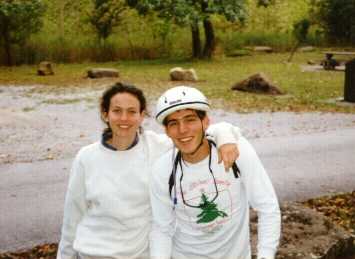 Brandy and (on bike) me, at Devil's Den, Fall 1995 |