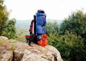 Overlook near the Butterfield Hiking Trail in the Arkansas National Forest, solo backpacking trip, October 1996 |