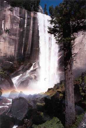 Vernal Falls, which is bigger than it looks here. This was hard to shoot without getting mist on my camera lens, even though I was probably a quarter mile from the falls. Told you the views are great. |